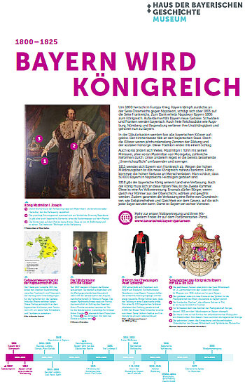 Die Plakatserie nimmt die Geschichte des modernen Bayern in den Blick. Auf acht Plakaten werden zentrale Ereignisse der bayerischen Geschichte anschaulich dargestellt. Das neunte Plakat, für die Jahre 2000-2025, ist leer und kann von den Schülerinnen und Schülern selbst gestaltet werden: Was macht nach Meinung der jungen Generation die Gegenwart aus? Was prägt für sie das Leben in Bayern heute?
