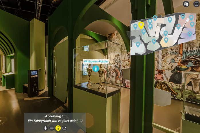 Im 360-Grad-Rundgang erleben Sie alle Ausstellungsabteilungen nach.