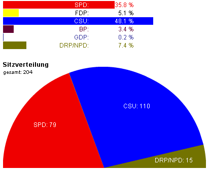 Die negative Überraschung bildet der Einzug der NPD in den Bayerischen Landtag. Die neue rechtsextreme Partei erzielt landesweit 7,4% und zieht mit 15 Abgeordneten in den Landtag ein, da sie in Mittelfranken die Zehnprozent-Hürde deutlich überspringt. Schon in der von Alterspräsident Wilhelm Hoegner (SPD) eröffneten Konstituierenden Sitzung des neuen Landtags kommt es am 2. Dezember 1966 zu verbalen Auseinandersetzungen mit der neuen rechten Fraktion, die vergeblich einen Vizepräsidenten-Posten einfordert. Die beiden großen Fraktionen von CSU und SPD hatten zuvor eine Geschäftsordnungsänderung vereinbart (d`Hondtsches Verteilungsverfahren), die dies verhindert.