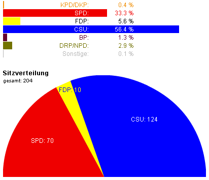 Mit 56,4% der Stimmen feiert die CSU bei der Landtagswahl am 22. November 1970 einen triumphalen Sieg. 124 Mandate bedeuten eine deutliche absolute Mehrheit für die schon bisher allein regierenden Christsozialen. Die SPD verliert Stimmen und kommt auf 33,3% (70 Mandate), während der FDP der Sprung in den Landtag nach vierjähriger Pause wieder gelingt (5,5% und 10 Mandate). Erfreut zeigen sich alle Beobachter über die Marginalisierung der NPD (2,9%), die den erneuten Einzug ins Parlament verpasst. Die Wahlen werden allgemein vor dem Hintergrund des "Machtwechsels" in Bonn und der damit verbundenen neuen Ost- und Deutschlandpolitik kommentiert, die von der CSU abgelehnt wird.