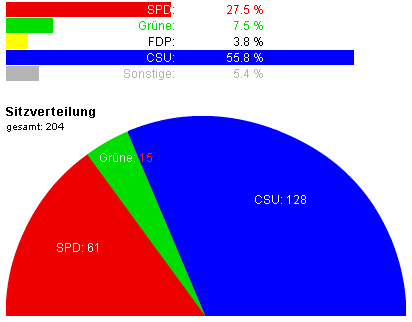 In der Landtagswahl vom 12. Oktober 1986 muss die SPD eine schwere Niederlage hinnehmen: Sie erreicht mit 27,5% (61 Mandate) das bis dahin schlechteste Ergebnis seit Kriegsende. Die CSU verliert ebenfalls 2,5 Prozentpunkte und erhält 55,8% der Stimmen (128 Mandate). Ohne Schwierigkeiten überspringen die Grünen die Fünfprozent-Hürde (7,5% und 15 Mandate), während die FDP erneut scheitert. Die CSU verliert Wahlanalysen zufolge vor allem in ihren ländlich-katholischen Kernlanden, in denen die rechtsradikale Partei der "Republikaner" offensichtlich eine spürbare Konkurrenz darstellt (insgesamt erreichen diese aber nur 3%).