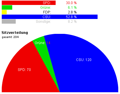 Erneut erringt die CSU bei der Landtagswahl am 25. September 1994 die absolute Mehrheit (52,8% und 120 Mandate). Die SPD legt zu und kommt auf 30% (70 Mandate), die Grünen erreichen 6,1% (14 Mandate). FDP und die vom bayerischen Verfassungsschutz als rechtsextrem und verfassungsfeindlich eingestuften "Republikaner" scheitern an der Fünfprozent-Hürde. Für die SPD zieht Renate Schmidt, das "Zugpferd" der Partei, ins Parlament ein und übernimmt den Fraktionsvorsitz von Albert Schmid, der zwei Jahre später nach einem Konflikt mit Schmidt das bis dahin ausgeübte Amt des Geschäftsführenden Fraktionsvorsitzenden aufgibt.