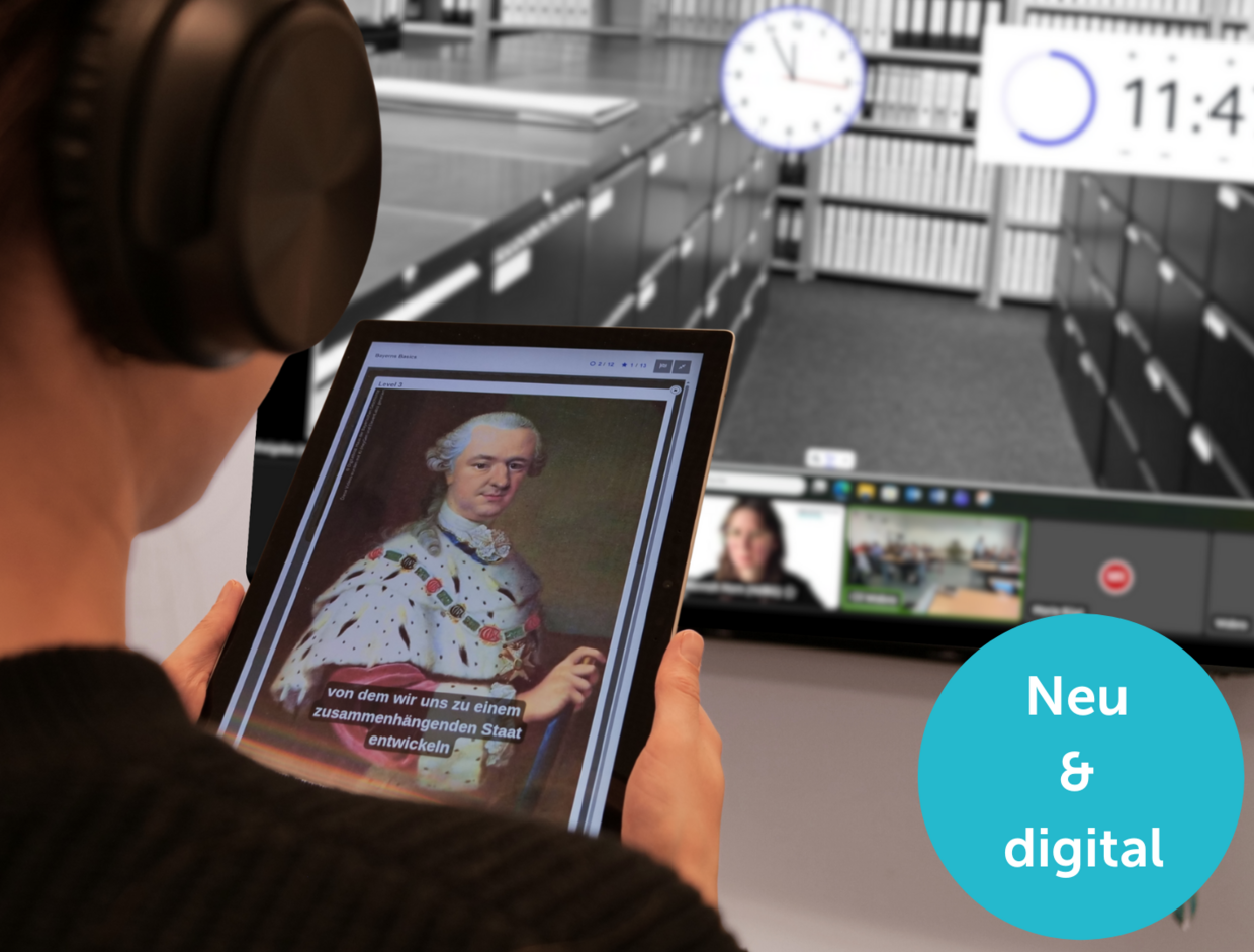 Das HdBG kommt in Ihr Klassenzimmer! Wie entsteht bayerische Identität – und welche Geschichten verbergen sich dahinter? In einem moderierten, rein digitalen 45-minütigen Live-Format begeben sich die Schülerinnen und Schüler auf eine spannende Spurensuche. Mithilfe einer interaktiven Lernkarte entschlüsselt die Klasse in abwechslungsreichen Rätseln spielerisch Bayerns Basics – kooperativ, lebendig und nah an der Lebenswelt der Jugendlichen. Das Programm eignet sich für Realschul- und Gymnasialklassen und orientiert sich am LehrplanPLUS des Gymnasiums (8. Jahrgangsstufe). Das Angebot lässt sich technisch unkompliziert in den Unterricht integrieren.