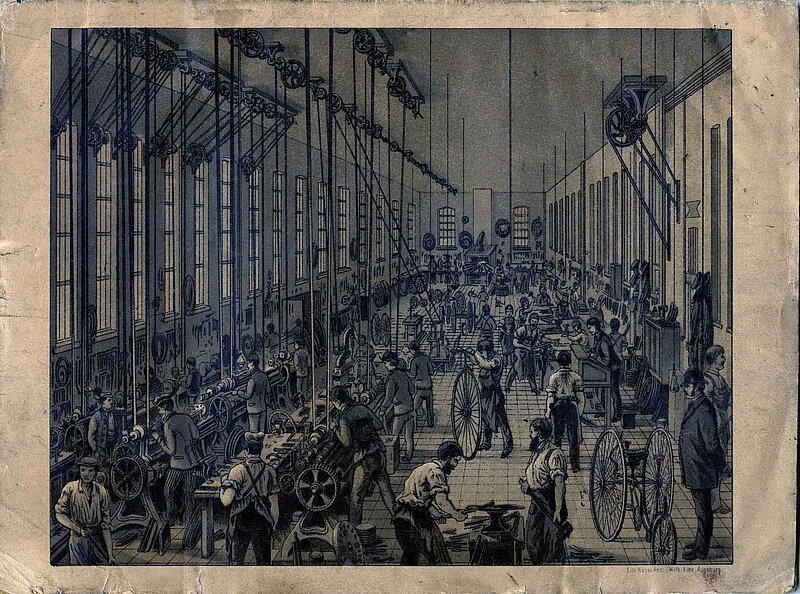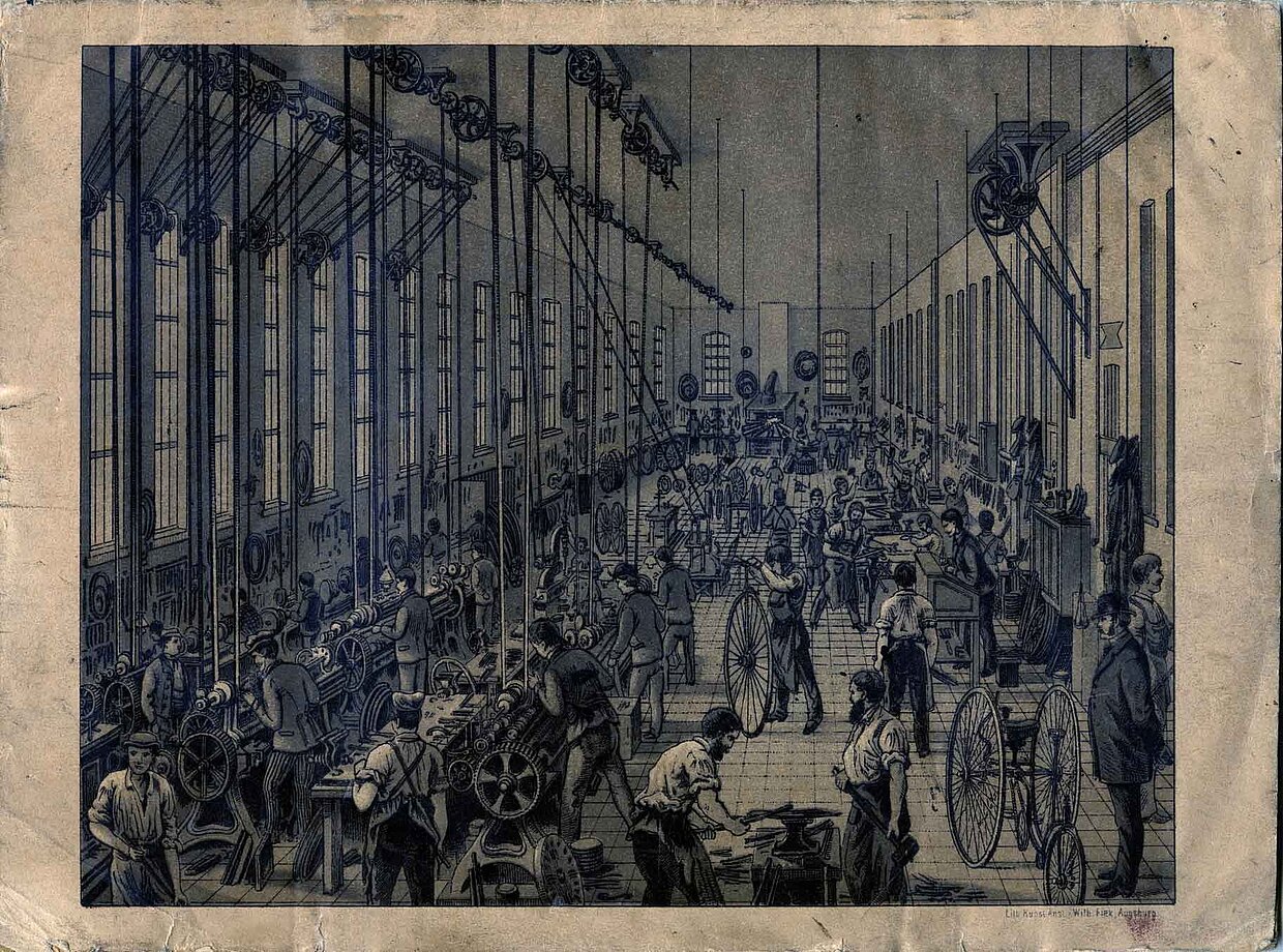 In den Fabriken arbeiten die Menschen mit Maschinen.